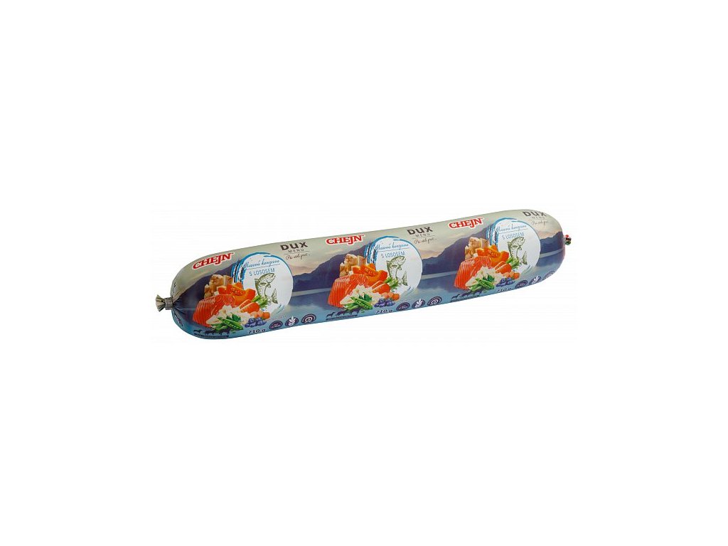 Maso a produkty živočišného původu 95% ( kuře celé, kuřecí ořez, kuřecí křídla, losos – ořez, vnitřnosti ( srdíčka, žaludky ), rýžová kolínka, zelenina – mrkev, celer, hrách, dýně, ovoce – borůvky ( vitamíny A, B a C, minerální látky, antioxidanty ).